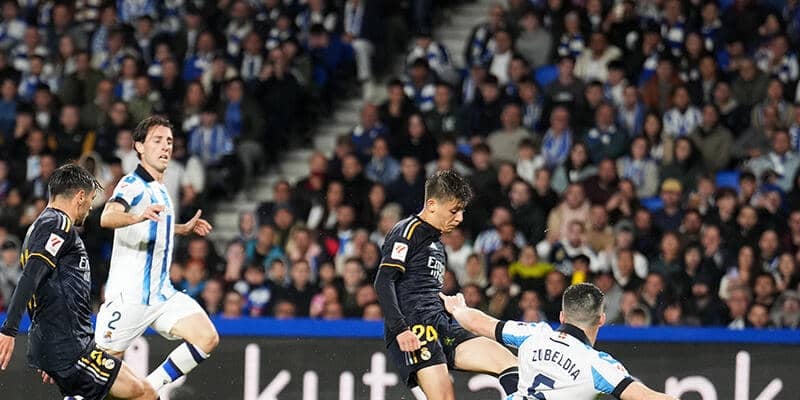 膠着状態が続いた中、リュディガーを投入して逃げ切り体制のマドリーに対し、ソシエダは80分に久々にゴールに迫る。久保のスルーパスを受けたオヤルサバルがループシュートを狙ったが、わずかに枠を捉えきれなかった。