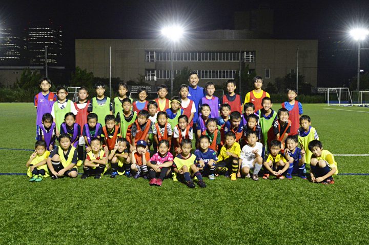 90分に渡るスクールもあっという間に終了。最後に前園さんは「日本代表に招集されたときとかは、初めての人ともコミュニケーションを取らないといけない。自分がどういうプレーをしたいのか、相手がどういうプレーを求めているのか。それには積極的に発言しないといけない。今日はそういう意味で積極性が足りなかったかな」と少々厳しい言葉を語りかけつつも、「僕もみんなと同じような練習を少しずつ、ずーっと続けてきたことでうまくなれた。いやだなとか、疲れたなとか、練習をやりたくない日もあると思うけど、サッカーをやめることはいつでもできるから、サッカーが上手くなりたい、楽しいと思っていたら、毎日少しでも練習することを忘れないでほしい。今日のスクールで学んだことを自分のチームに持ち帰って、うまくなるように頑張ってほしい」と、子どもたちへの熱いエールでスクールを締めました。