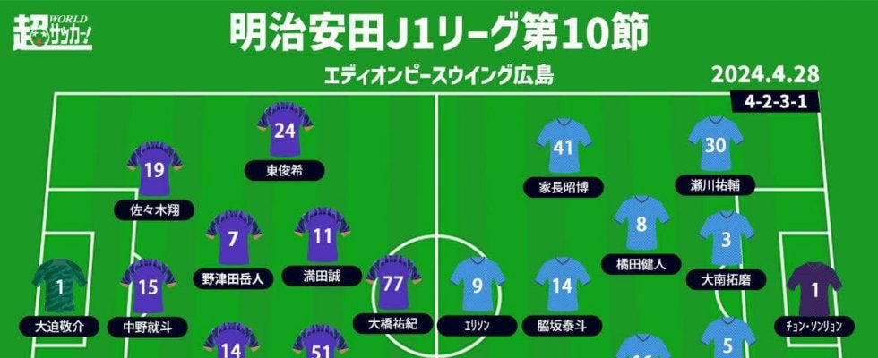 【明治安田J1リーグ第10節】 2024年4月28日(日) 14:00キックオフ サンフレッチェ広島(3位/17pt) …