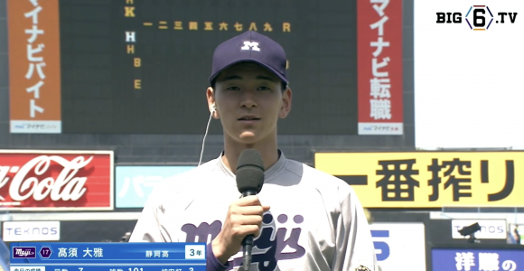 【ヒーローインタビュー】明治大学 髙須大雅(③静岡) | 東京六大学野球