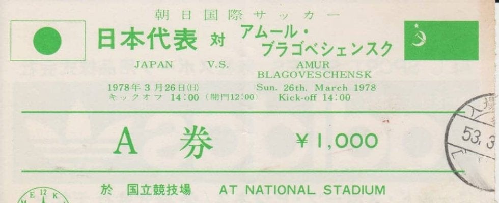アムール戦の入場券。単色刷りというあたりにも、「ヤル気」のなさが感じられる。提供/後藤健生