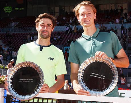 男子テニスのムチュア・マドリッド・オープン(スペイン/マドリッド、レッドクレー、ATP1000)は4日、ダブルス決勝が行われ、S・コルダ(アメリカ)/ J・トンプソン(オーストラリア)組がA・ビハル(ウルグアイ)/ A・パブラセク(チェコ)組を6-3, 7-6 (9-7)のストレートで破り、優勝を飾った。コルダにとってはダブルス初タイトル、トンプソンは今季4度目となる通算5勝目を果たした。