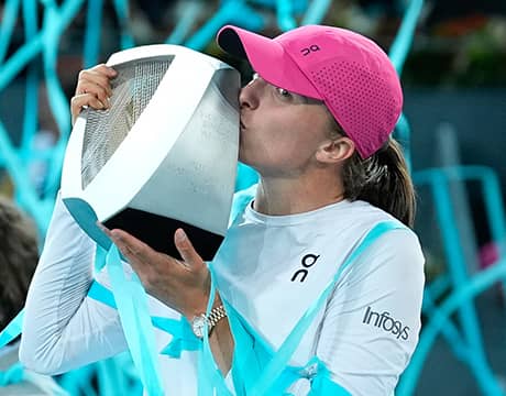 世界ランク1位で22歳のシフィオンテクは今季、2月のカタール・トータルエナジー・オープン(カタール/ドーハ、ハード、WTA1000)で3連覇を達成すると3月のBNPパリバ・オープン(アメリカ/インディアンウェルズ、ハード、WTA1000)で2年ぶり2度目の大会制覇を果たすとともにキャリア通算19度目のツアー優勝を飾った。