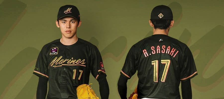BLACK SUMMERユニホームを着用したロッテ・佐々木朗希【写真:球団提供】