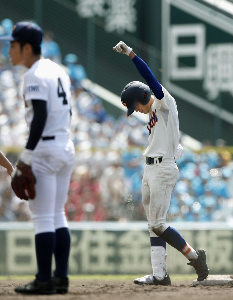 済美-盛岡大付 10回表、適時打を放ち、ガッツポーズの盛岡大付・林=甲子園【写真提供:共同通信社】 第99回全国高…