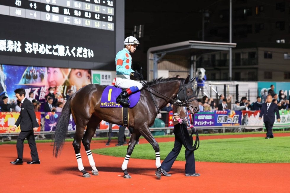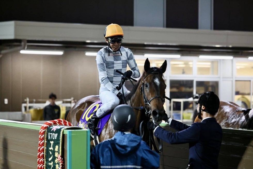 「今までずっと勝ってきてたので、なんかストップさせたくないなっていう気持ちはありましたし、ただ、今日は強いメンバーだったので、どこまでやれるかなという気持ちと両方ありました。状態の方は今までで1番良いと厩舎から聞いてましたし、実際そう感じました。スタートがちょっと難しい馬なんですけど、今日はいいスタートを切れて、すごく行きっぷりも良かったので、あまり無理に抑えずと思って先手を取りました。手応えはいいんですけど、ちょっと先頭1頭になると気を抜く癖がある馬なので、ちょっとヒヤっとしましたが、内容的には完勝だったと思います。まだ今日が6戦目ですし、まだ強くなりそうな馬なので、これからがほんと楽しみですね。(名古屋グランプリに続き連続での重賞制覇と非常に調子がいいんじゃないでしょうか)いや、良い馬に乗せてもらっているので。今日はほんとにオーサムリザルト良いレースができてほんと良かったなと思ってます。また人馬ともに応援していただければと思います。今日はありがとうございます」