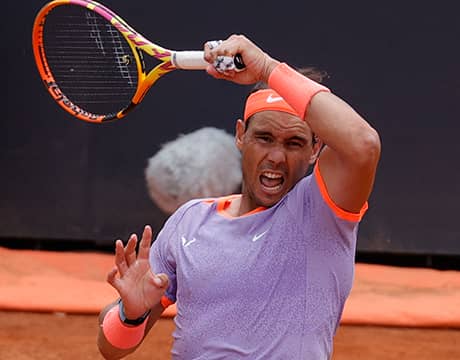 男子テニスのBNLイタリア国際(イタリア/ローマ、レッドクレー、ATP1000)は9日、シングルス1回戦が行われ、プロテクトランキング(負傷などによる長期離脱選手の救済措置)を使用し出場している元世界ランク1位のR・ナダル(スペイン)が予選勝者で世界ランク108位のZ・ベルグス(ベルギー)を4-6, 6-3, 6-4の逆転で破り、2022年以来2年ぶり18度目の初戦突破を果たした。試合後にナダルは「あと2週間半でローラン・ギャロスがある。自分の体を限界まで追い込むことができるかどうか、自分自身に証明しなければならない瞬間がやってきた」と決意を口にした。