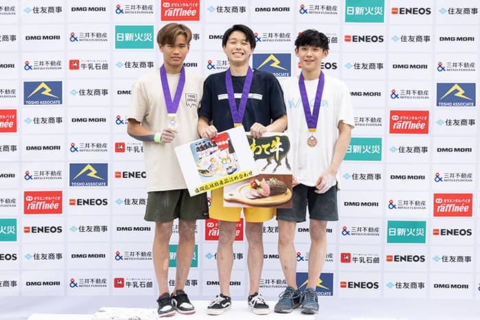 年少カテゴリーのユースBでは昨年のユース世界選手権で銀メダルを獲得した濱田琉誠が男子を制した。先週行われたリードユース日本選手権(以下LYC)で優勝していた仲田和樹が3完登目をマークした直後に登場した濱田も一撃で3完登に到達。完登に要したアテンプト数の差で仲田を上回り、2位だったLYCのリベンジを果たした。同女子は予選4位の山崎彩葉と同2位の西川美愛が全3完登で並び、いずれも2アテンプト以内に完登した山崎が初Vを決めた。