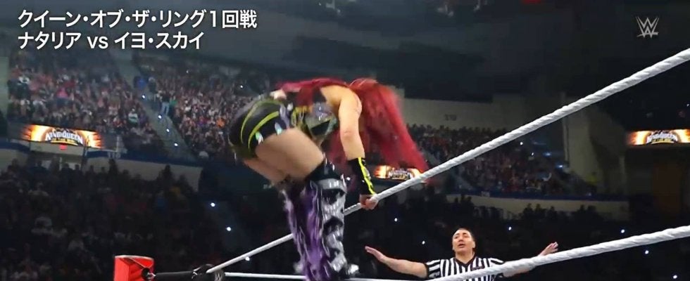 5月25日にサウジアラビアで開催されるプレミアム・ライブ・イベント「キング&クイーン・オブ・ザ・リング」への出場権をかけたトーナメントにイヨがエントリーし、WWE女子最古参のベテラン、ナタリアとの技巧を競う展開に。中盤には得意の場外での得意の飛び技で意外なシーンが飛び出す。