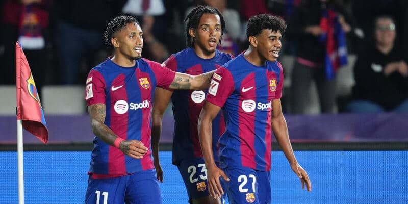対するバルセロナは、38分にハフィーニャが右ポスト直撃のミドルシュートでゴールを脅かすと、その2分後に先制する。40分、中盤でパスを受けたレヴァンドフスキがDFを引きつけてスルーパスを送ると、このパスに反応したギュンドアンが敵陣まで切り込みラストパス。最後はボックス内に走り込んだヤマルがゴール左隅にダイレクトシュートを流し込んだ。