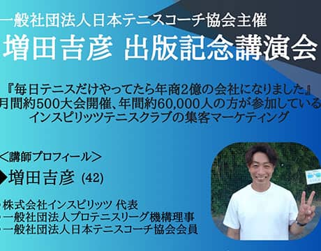 一般社団法人日本テニスコーチ協会が株式会社インスピリッツ代表の増田吉彦氏の著書の発売を記念して5月26日に講演会を開催する。