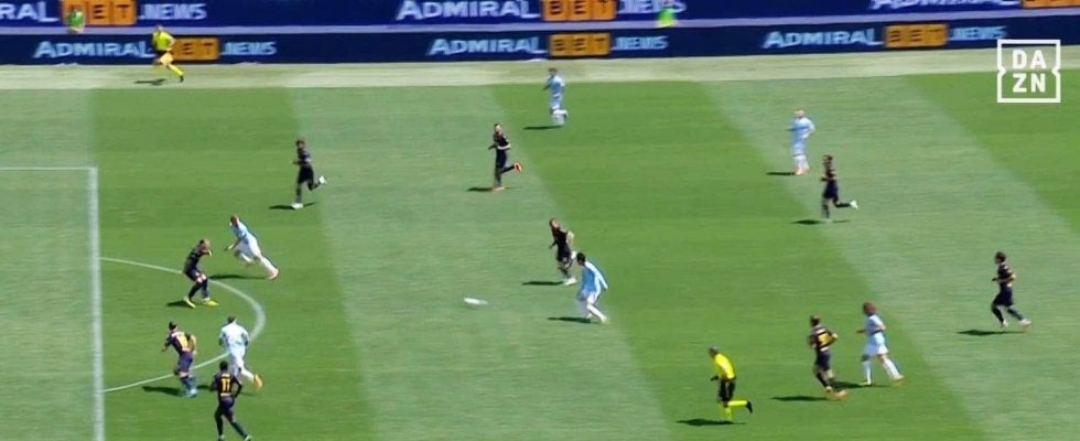 およそ15メートルほどのパスは、タイミング、スピード、コースともに完璧。あとは決めるだけかと思われたが、インモービレのトラップがやや詰まってシュートを打てず、“アシスト未遂”となった。