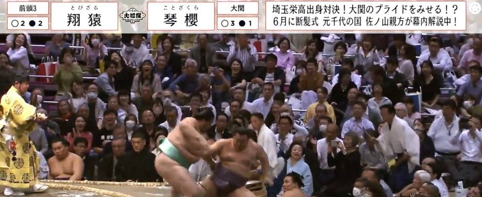 <大相撲五月場所>◇五日目◇16日◇東京・両国国技館 大関・琴櫻(佐渡ヶ嶽)が前頭三枚目・翔猿(追手風)を寄り倒しで下し…