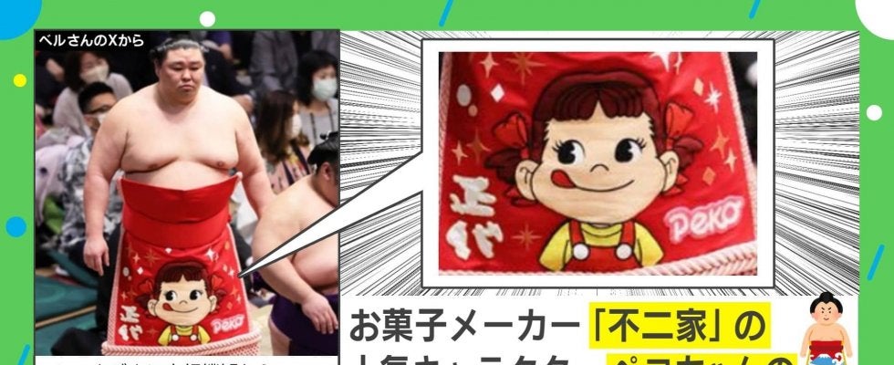 SNSでも「きゃわわわ!!」「化粧まわしがペコちゃんwこれだけでもう既に勝ってる!」「『正代』の文字がまたカワイイ」「ぺこちゃんがちょっと凛々しい」と大荒れに。