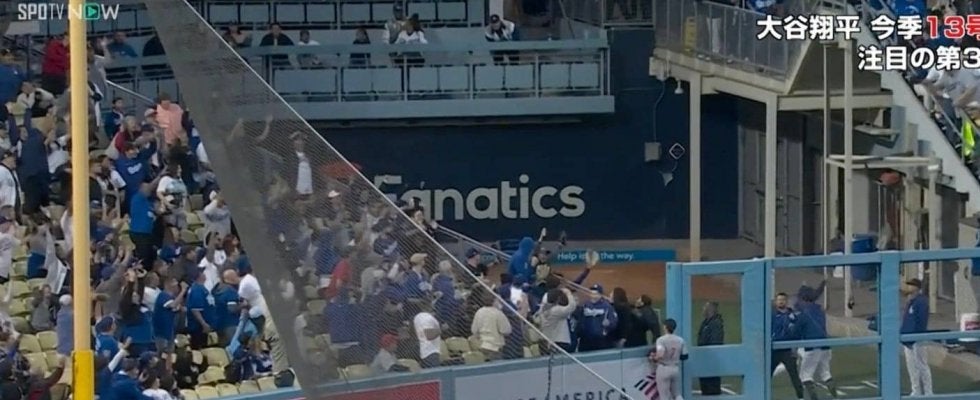球場騒然!よく捕ったな…!? 大谷翔平の“変態パワー弾”をキャッチした観客がヤバすぎる フェンス際での見事なプレーが話題に 「魔術師」「難しい打球だぞ?」