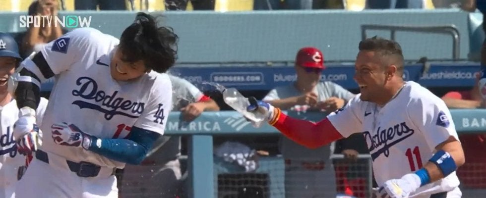 ドジャース大谷翔平投手が「2番・DH」で先発出場、両チーム同点で迎えた延長10回裏に大谷翔平が放ったドジャース移籍後初となるサヨナラヒットで試合が決着した。ヒーローはチームメイトから手荒い祝福を受けた。