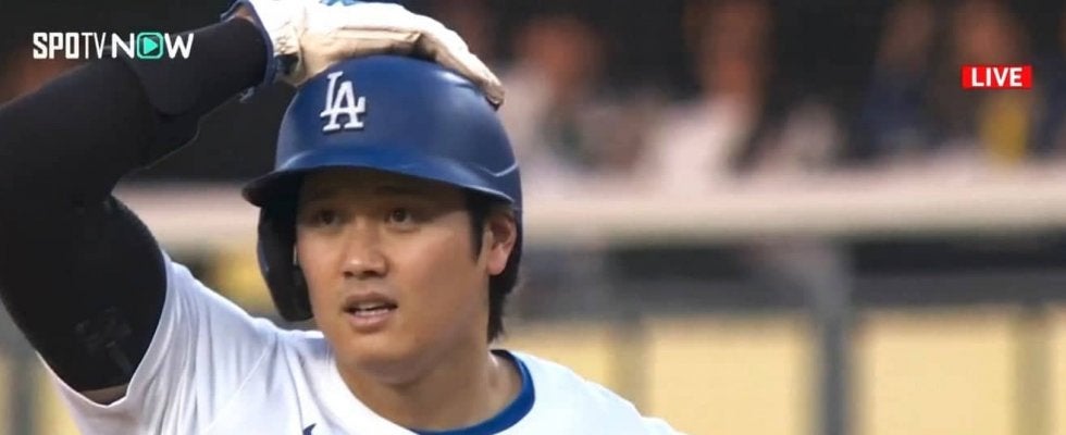 ドジャースの大谷翔平投手が「2番・DH」で先発出場。1回の第1打席はセーフティーバントで内野安打で出塁。意表を突かれた相手投手がマウンドで愕然とするリアクションを見せた。
