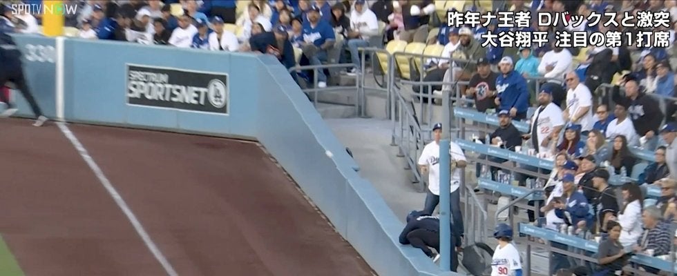 ドジャースの大谷翔平投手がダイヤモンドバックス戦に「2番・DH」でスタメン出場。第1打席で強烈なファールを放った際、ライト線付近にいたボールパーソンがこれを避けようと慌ててフェンスを乗り越えスタンドに逃げ込む場面があった。忍者のような避けっぷりに視聴者からも「身軽やな」「ナイス回避」と称賛の声もあがった。