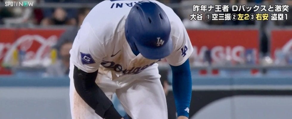 ドジャースの大谷翔平投手がダイヤモンドバックス戦に「2番・DH」でスタメン出場。タイムリーを含む2安打と活躍した。この日2盗塁も決めた大谷だが、スライディングした際にユニフォームの膝の部分が擦れて破けてしまうハプニングが発生。