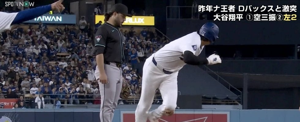 完全に虚を突かれた相手捕手が慌ててサードに投げるも、送球は三塁手が反応すらしないほど大きく逸れる悪送球となった。大谷は三塁に滑り込んだあとすぐさま立ち上がると、そのままホームへ。余裕の表情でホームインし、ドジャースが1点を返した。