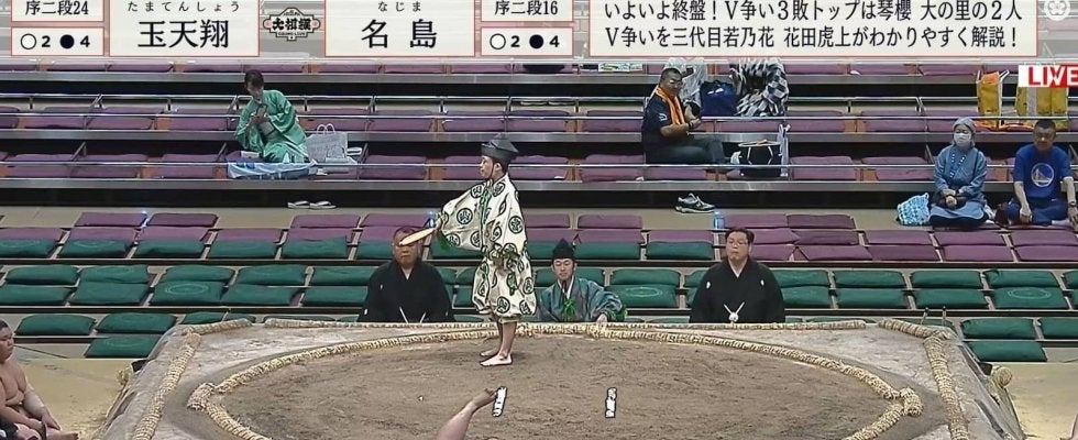<大相撲五月場所>◇十四日目◇25日◇東京・両国国技館 序二段二十四枚目・玉天翔(片男波)と、序二段十六枚目・名島(湊)…