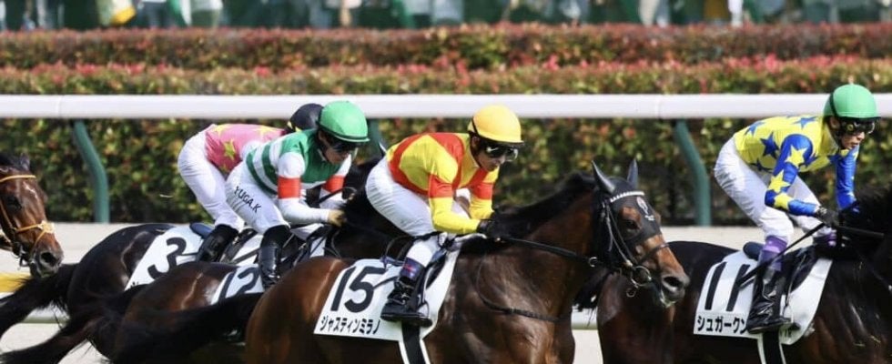 皐月賞を制して無敗の二冠を目指したジャスティンミラノ(牡3・栗東・友道康夫)は、馬場の真ん中から伸びるも2着までとなった。