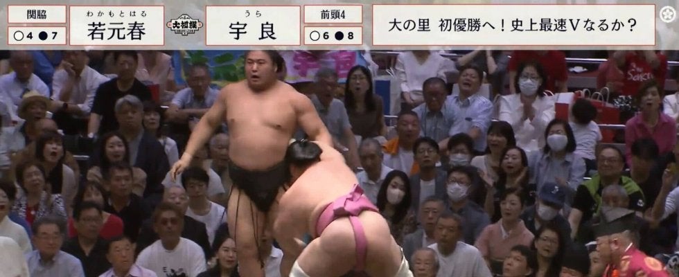 初日から6連勝と好スタートを切ったが、その後まさかの8連敗を喫し、負け越しが決まってしまった宇良。迎えた千秋楽は、八日目から十日目まで休場した関脇・若元春(荒汐)との一番。宇良は圧力に屈し土俵際に追い込まれる場面もあったが、そこから相手の中に入り、寄り切って逆転勝ちを収めた。