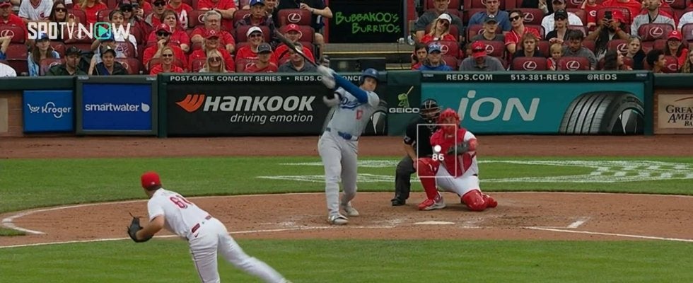 ケガの具合が心配されたドジャースの大谷翔平投手だったが、その不安を払拭するロケット打球を放った。113.5マイル(約182.7キロ)のロケット打球は、一塁手のミットを弾き飛ばすほどの一打だった。