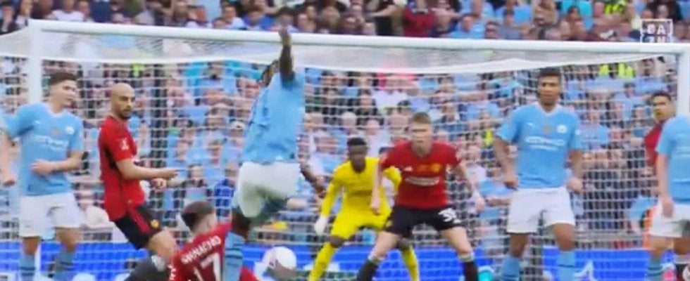 相手陣内に押し込んでパスを回すシティは、中央のMFフィル・フォーデンから左サイドに展開。このボールを受けたドクが、ユナイテッドのFWアレハンドロ・ガルナチョ、DFアーロン・ワン=ビサカに縦突破を警戒される1対2の状況を迎えた。