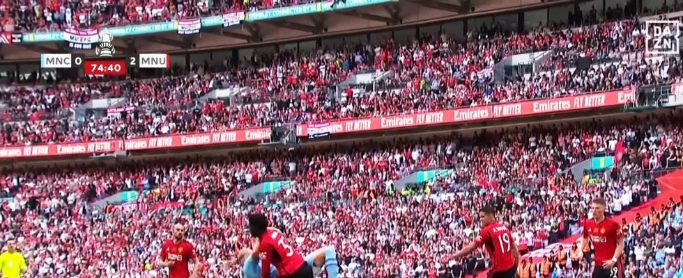 2シーズン連続でマンチェスター・ダービーとなったFAカップ決勝。リベンジに燃えるユナイテッドが2点を先行し、迎えた75分に問題のシーンが起こった。