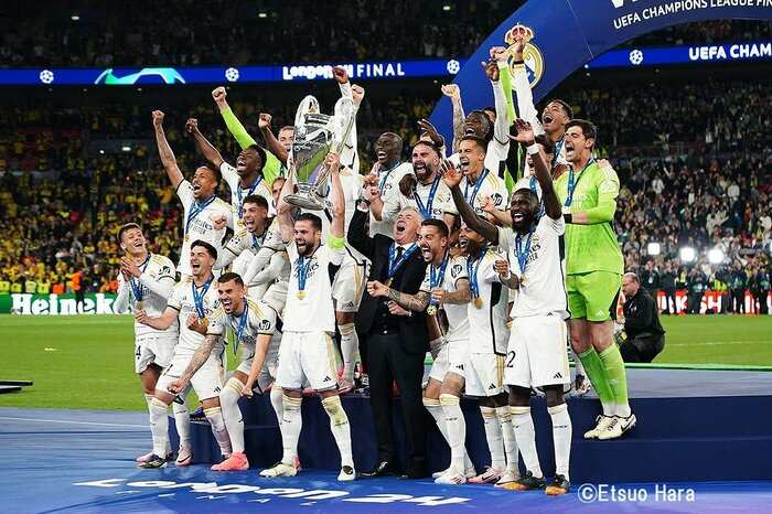レアル・マドリードが2シーズンぶりに、史上最多記録を更新する15回目の優勝を果たした今季のチャンピオンズリーグ。日本時間6月2日(日)早朝に行われた欧州クラブ最高峰の戦いを、イギリス・ロンドンのウェンブリー・スタジアムで撮影した原悦生。生涯サッカーカメラマンが見た、白い巨人の「知られざるリアル」と、スタジアムの「語られざる異様」――。