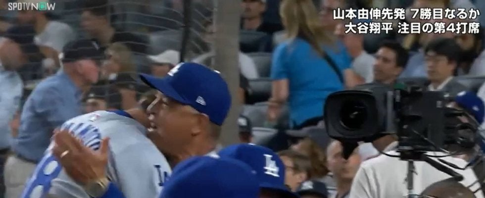 ヤマモト、よくやった!ライバル球団をねじ伏せた山本由伸 力投を出迎えたロバーツ監督が熱いハグの感動シーン | ABEMA