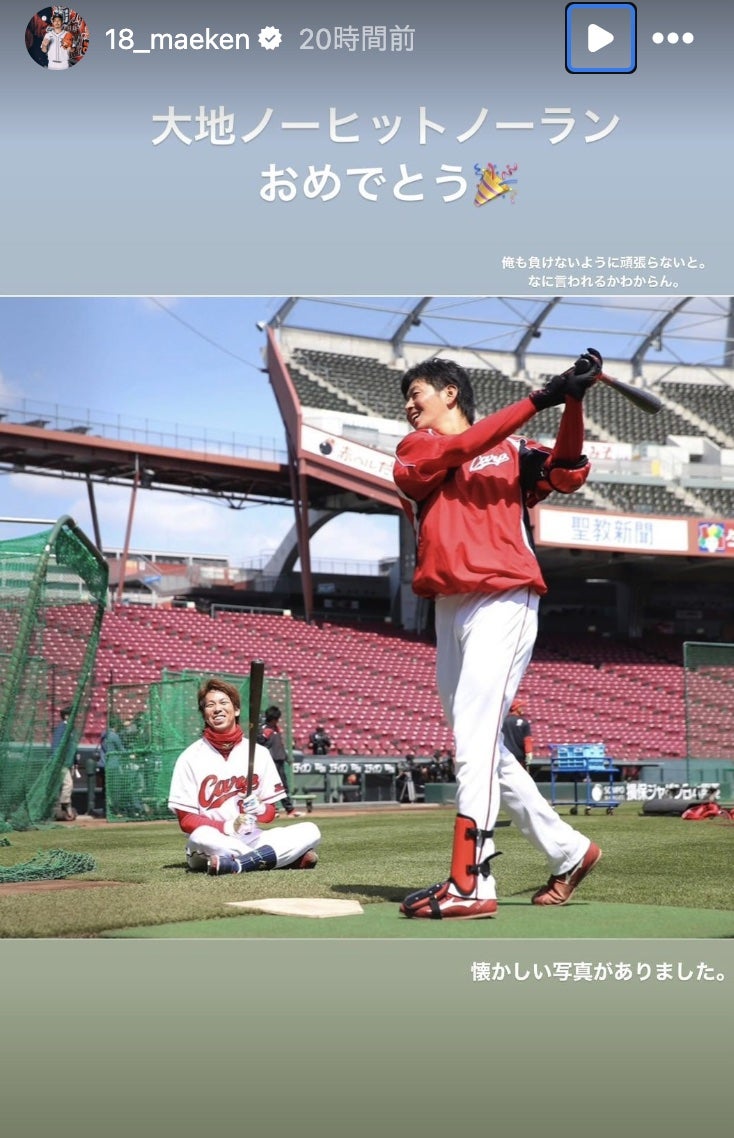 この投稿にSNS上では「マエケンのインスタ見てうるっとした😭」「いい写真すぎる」「カープのエースの系譜最高です😊」など、多くの反応が見られた。
