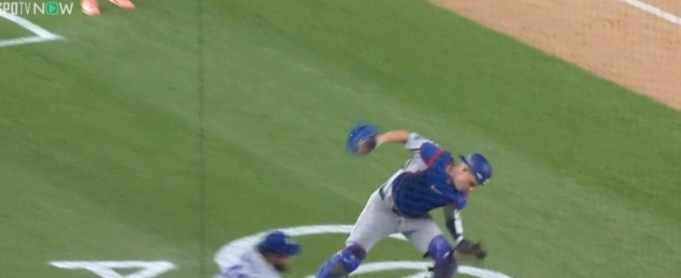 2-1で迎えた延長11回裏・ヤンキースの攻撃、2死一塁の場面で、5番のアンソニー・リゾが放った打球はフラフラと本塁左のファウルゾーンへと上がる平凡なキャッチャーフライに。これをキャッチャーのウィル・スミスが追いかけ、早々に落下点へと入ったものの、なぜかピッチャーのラミレスが積極的に追いかけ、最後は滑り込んでのキャッチを試みることに。