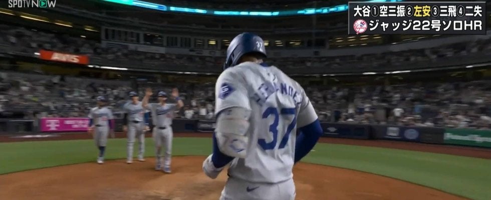 ベンチへ戻ってからもベッツに向かって雄叫びをあげたヘルナンデスに、普段はクールなベッツが大爆笑。最後にまたベッツと手をバチン!と叩き合った。大興奮のヘルナンデスにファンも爆笑。「自分をめっちゃ出すねw」「吠えたww」「叫んでるw」「凄いよテオ様」「声でっかw」と数多くの反響が寄せられた。Xでは“テオスカー”が早速トレンド入りしていた。(ABEMA『SPORTSチャンネル』)