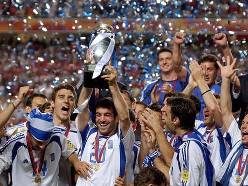 決勝で開催国ポルトガルを破りEURO2004で優勝を飾ったギリシャ photo by AP/AFLO