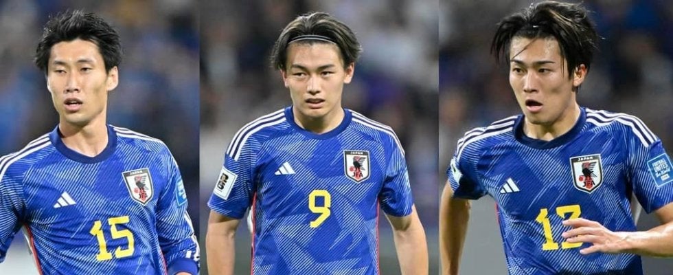 サッカー日本代表の鎌田大地、上田綺世、中村敬斗 撮影:中地拓也
