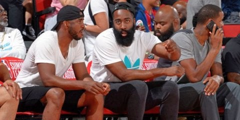 ロケッツのジェームズ・ハーデンとクリス・ポールがイベントで競演、新バックコートコンビへの期待を煽る妙技を連発!