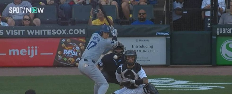 ドジャースの大谷翔平投手がホワイトソックス戦に「1番・DH」でスタメン出場。第1打席で今季25号となる2試合連続の先頭打者ホームランを放った。インパクトの瞬間、衝撃のあまり相手捕手もびっくりしたように目をつぶってしまった。