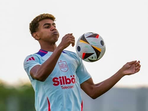 ヤマルはバルサの下部組織「ラ・マシア」育ちで、リオネル・メッシの系譜で育てられた。しかし、ドリブルのリズムはメッシのような単騎で敵陣へ斬り込む激しさではなく、ブラジル人のサンバのようなおおらかさと自由が内在し、捉えどころのなさにスペクタクルを感じさせる。左利きにしたロナウジーニョ、ネイマールに近いか。