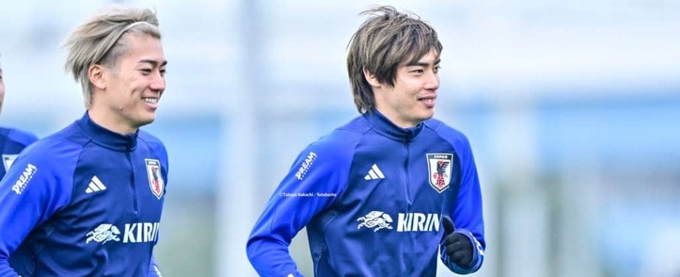 サッカー日本代表の中村敬斗と伊東純也 撮影:中地拓也