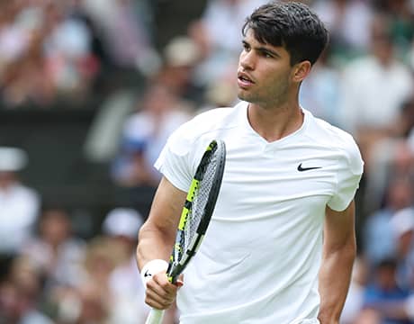 21歳で世界ランク3位のアルカラスは昨年のウィンブルドン決勝でN・ジョコビッチ(セルビア)を破り同大会初優勝。今大会は大会連覇と、先月タイトルを獲得した全仏オープン(フランス/パリ、レッドクレー、グランドスラム)に続く四大大会4勝目を狙っている。