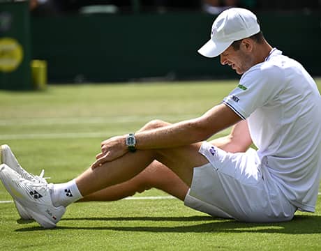 テニスのウィンブルドン(イギリス/ロンドン、芝、グランドスラム)は4日、第7シードのH・フルカチュ(ポーランド)と世界ランク34位のA・フィス(フランス)の男子シングルス2回戦が行われたが、フルカチュは6-7 (2-7), 4-6, 6-2, 6-6 (8-9)の時点で途中棄権した。フルカチュは最後のタイブレークでネット際のボールに飛びついた際に右脚を負傷している。
