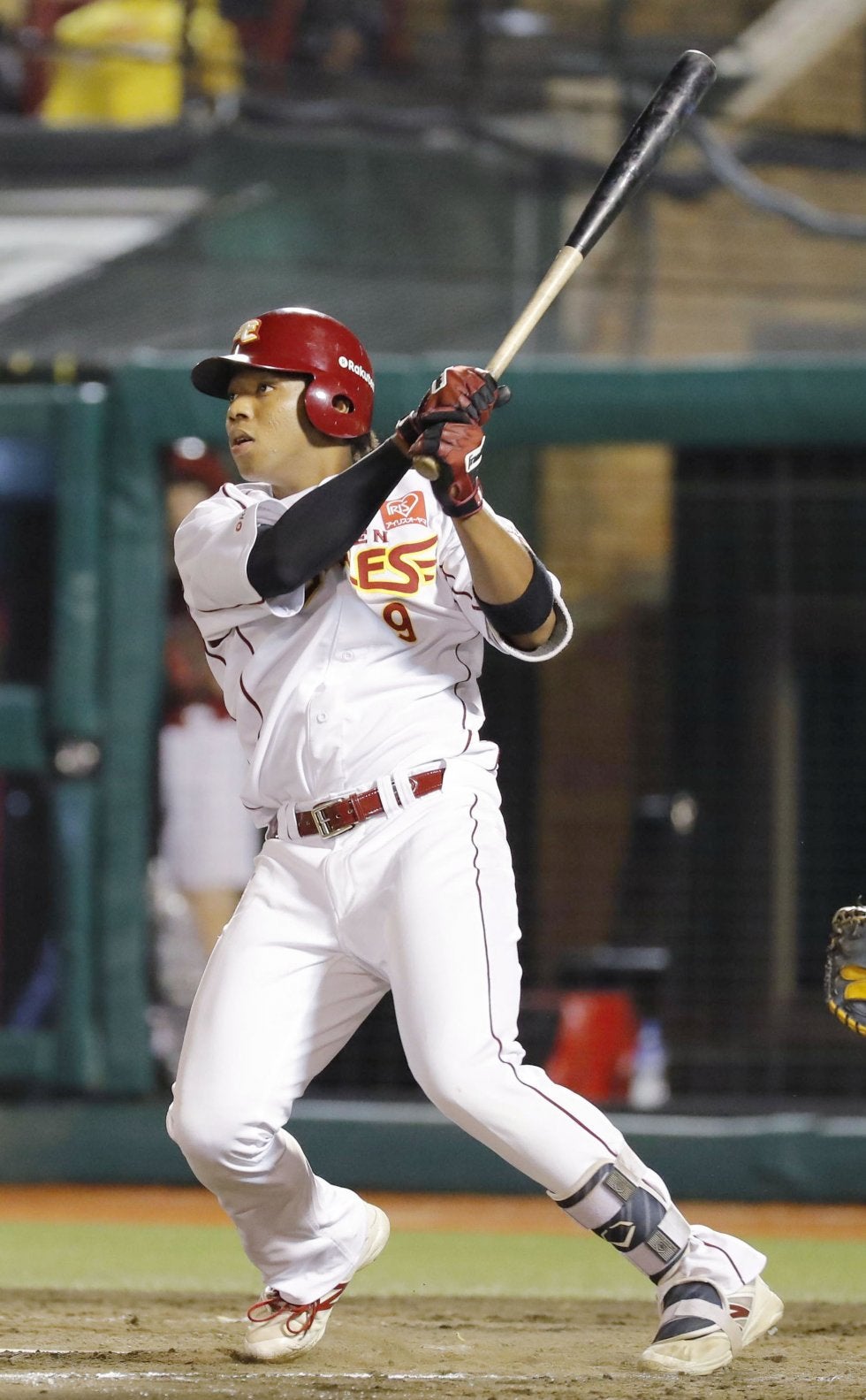 前日に続いて「1番・センター」で今季18試合目の出場(スタメン15試合目)。2回の第2打席で叩きつける打球でキャッチャー前への内野安打を放つと、すかさず2盗に成功。自慢のスピードを見せた後、第3打席はレフトフライ、第4打席はセカンドフライに倒れたが、2点を追う9回裏の第5打席で「速球を狙っていた」と北海道日本ハム・増井の147キロのストレートを捉えて左中間スタンドまで運ぶ豪快なアーチを放った。