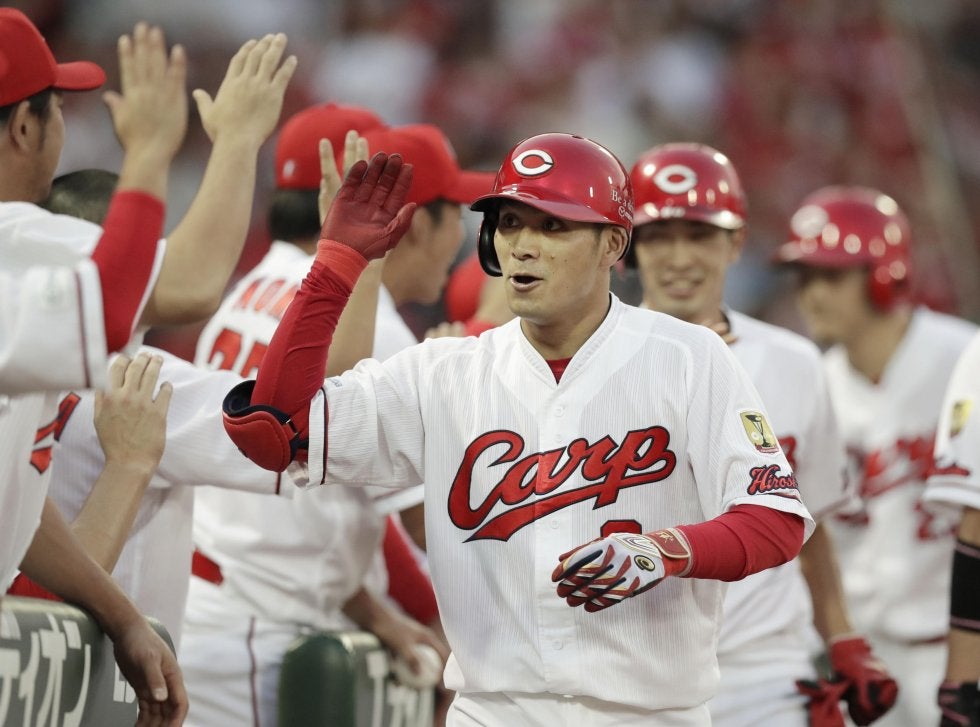 広島東洋の田中が26日の中日戦(マツダ)で先制のグランドスラムを放った。
