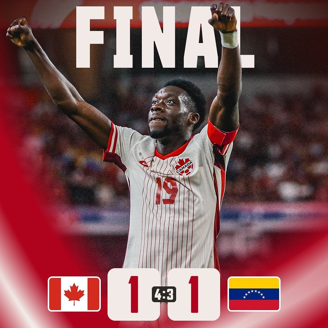 サッカー・カナダ代表が6日にインスタグラムを更新。日本時間6日10時から行われたベネズエラ戦の結果を報告した。「A SE…