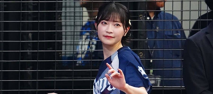 【実際の映像】ヒラヒラミニスカートでの一投が「とんでもなくかわいい」…声優の岩田陽葵さんの始球式