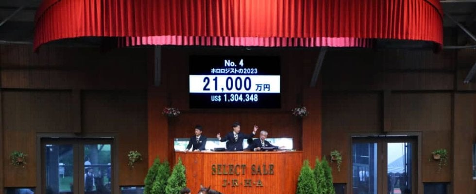 7月8日、北海道苫小牧にあるノーザンホースパークで、日本最大のサラブレッド市場「セレクトセール2024」が開催。1歳馬セールにて上場番号4番・ホロロジストの2023(牡)が2億1000万円で落札された。