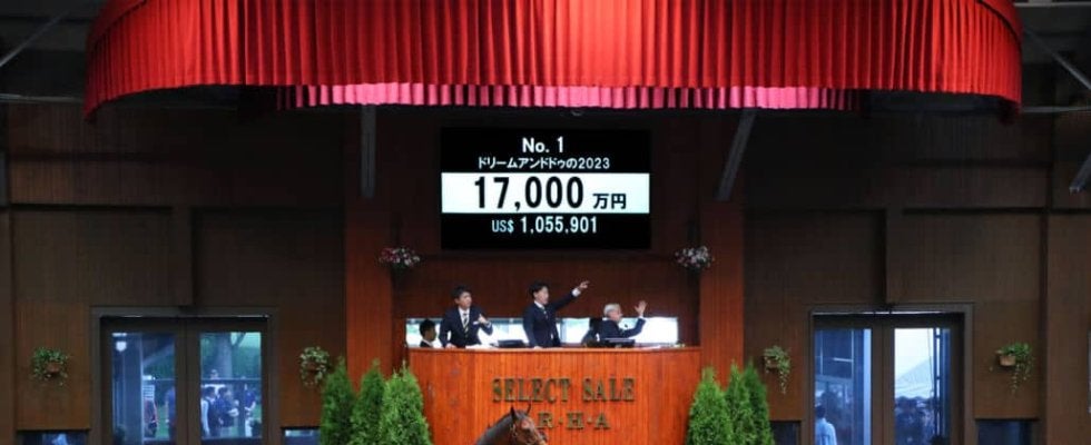 7月8日、北海道苫小牧にあるノーザンホースパークで、日本最大のサラブレッド市場「セレクトセール2024」が開幕。1歳馬セールにて上場番号1番・ドリームアンドドゥの2023(牡)が1億7000万円で落札された。