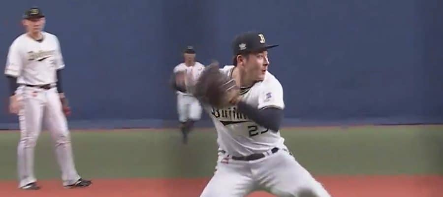 好守を見せたオリックス・吉田輝星【画像:パーソル パ・リーグTV】